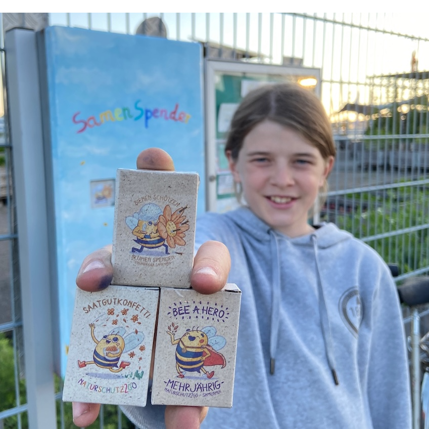 In meinem Projekt baue ich alte Kaugummi- und Kondomautomaten zu SamenSpendern um, aus denen man sich Saatgut zur Förderung der Biodiversität kaufen kann. Damit sich jede*r einen solchen aufstellen kann, habe ich eineBauanleitung auf Youtube veröffentlicht! Im Handumdrehen nachhaltig aktiv gegen das Insektensterben! SamenSpender sind upgecycelte alte Kaugummi- oder Kondomautomaten, die statt Kaugummis oder Kondome insektenfreundliches Saatgut, Bienenpralinen oder im Herbst Frühblüher vertreiben. Die Automaten sind individuell und können mit Hife der Bauanleitung von Naturschutz2go nachgebaut werden.